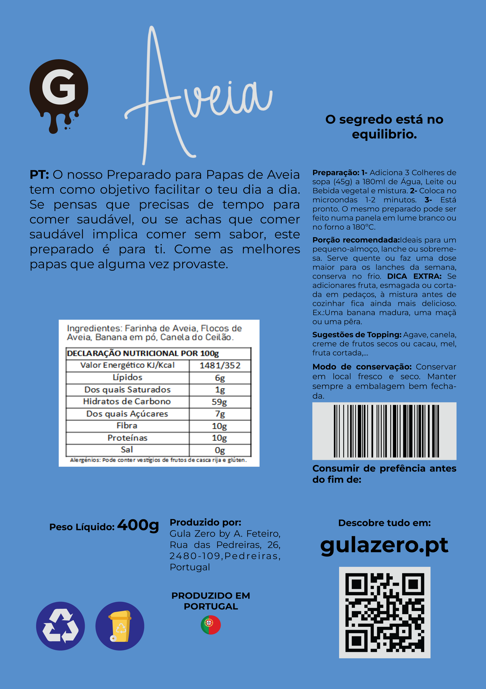 O preparado ideal para as tuas papas de aveia. Com farinha e flocos de aveia, banana em pó e canela do Ceilão.